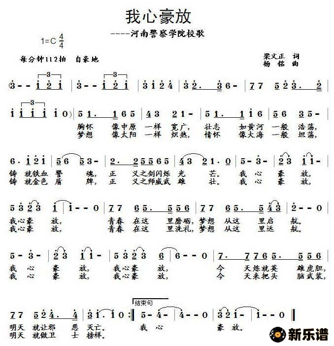演唱的我心豪放——河南警察学院校歌歌词,我心豪放——河南警察学院校歌简谱.