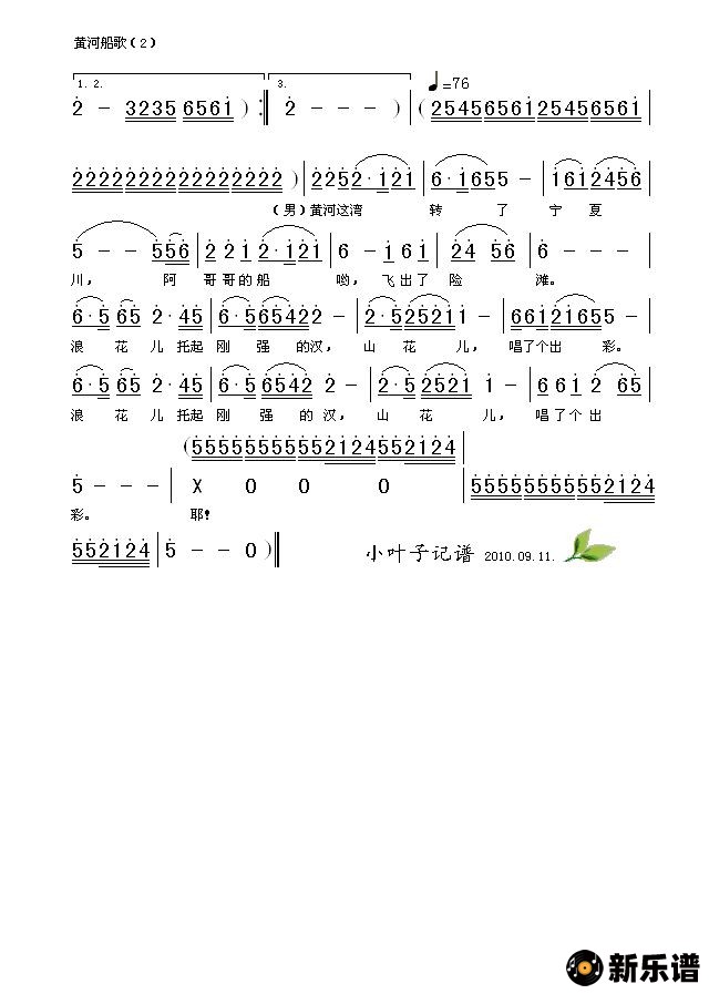 《黄河船歌》简谱 张德富/杜萍-小叶子制谱
