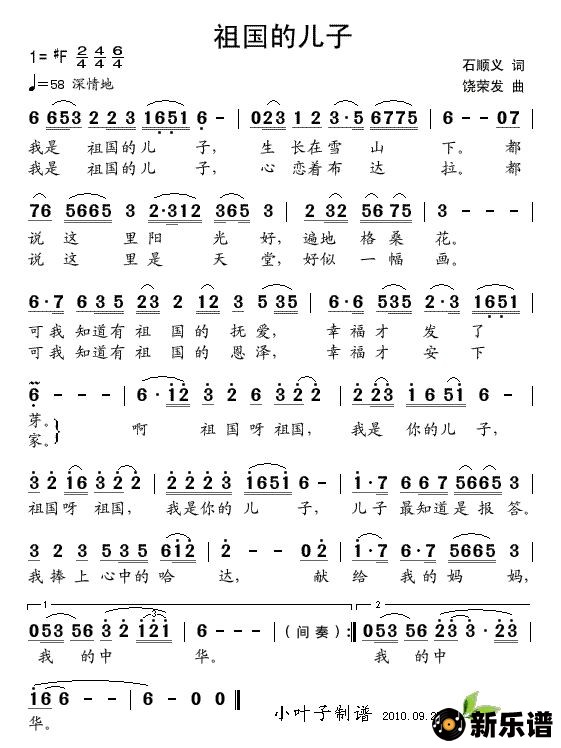 《祖国的儿子(手稿版)》简谱 -小叶子制谱