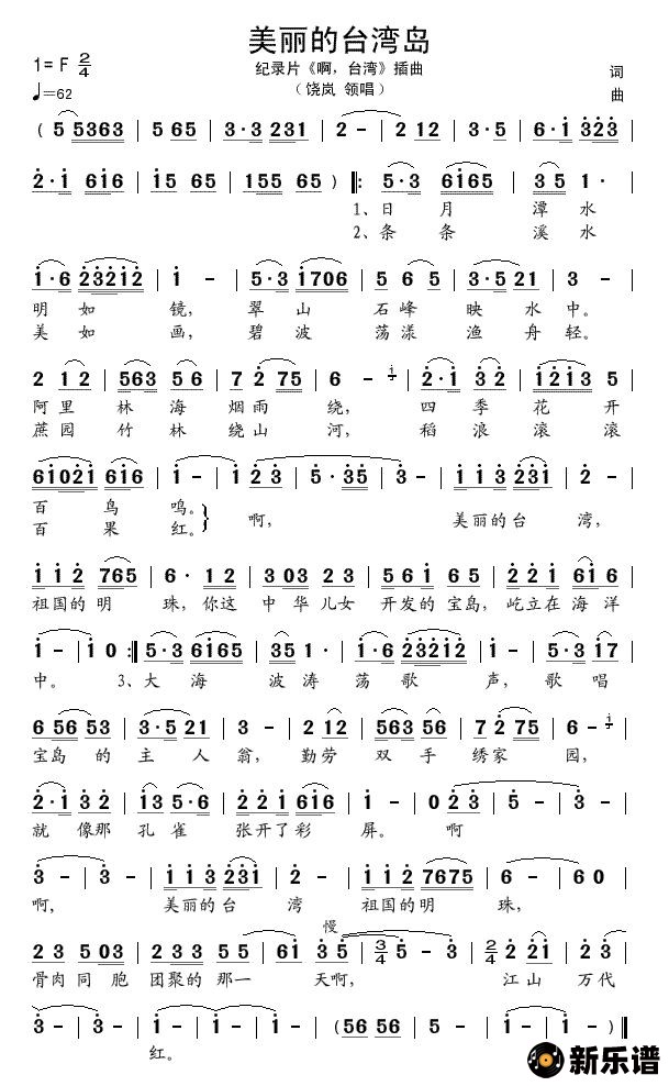 《美丽的台湾岛》简谱 饶岚-小叶子制谱