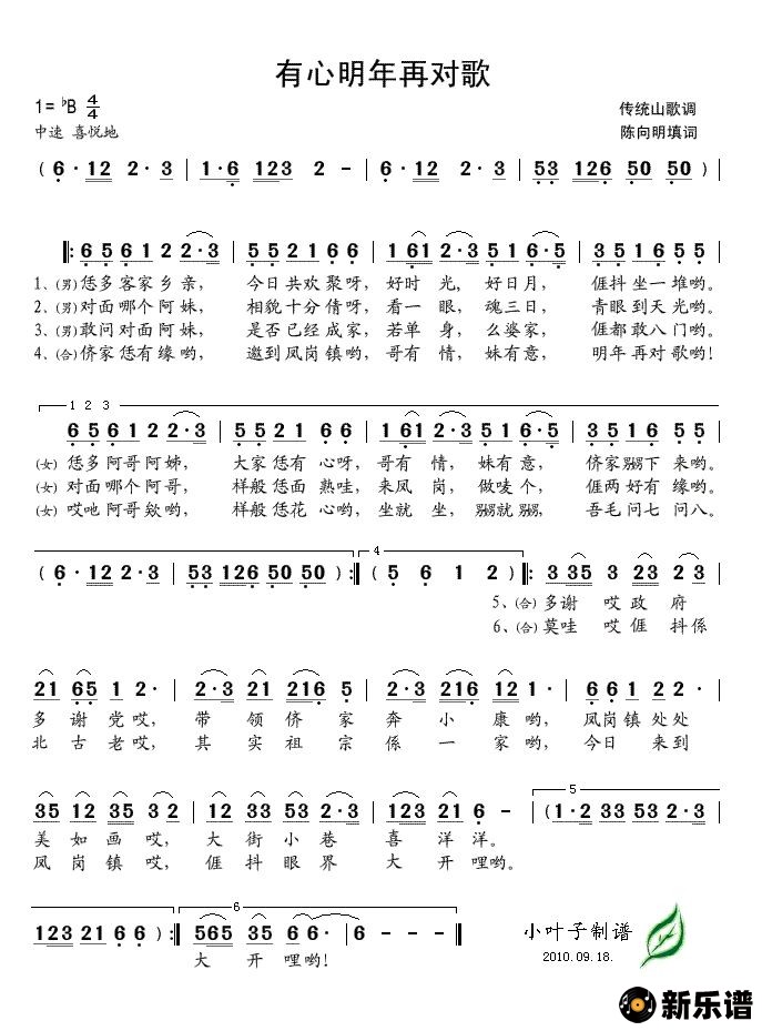 《有心明年再对歌》简谱 -小叶子制谱