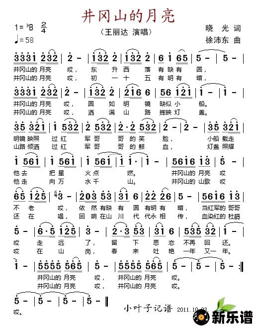 《井冈山的月亮》简谱 王丽达-小叶子制谱