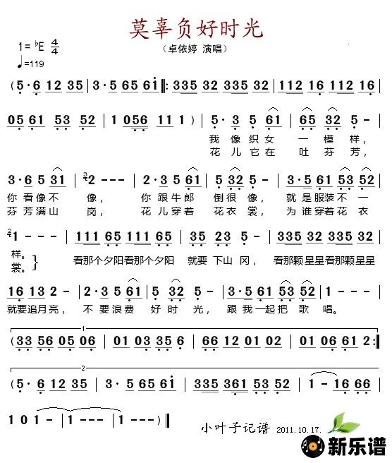 《莫辜负好时光》简谱 卓依婷-小叶子制谱