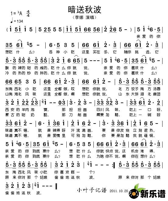 李娜演唱的暗送秋波歌词,暗送秋波简谱.
