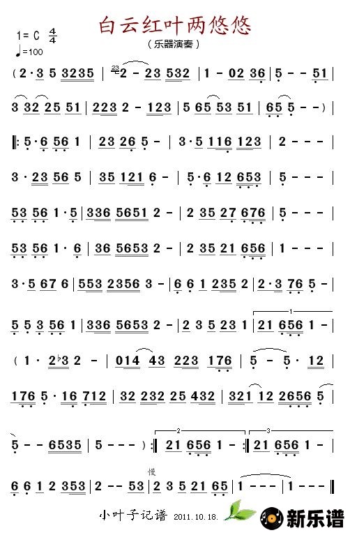 《白云红叶两悠悠》简谱 乐器演奏-小叶子制谱