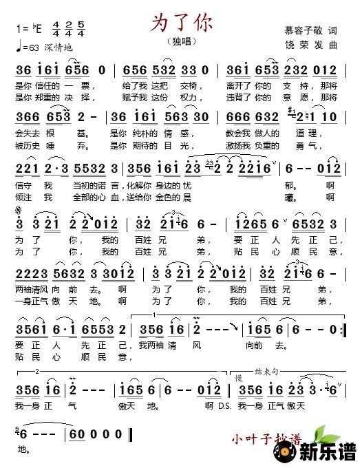 演唱的为了你(手稿版)歌词,为了你(手稿版)简谱.