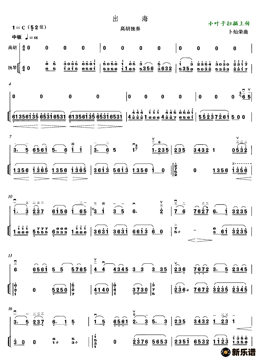 乐器演奏演唱的出海(广东音乐)歌词,出海(广东音乐)简谱.