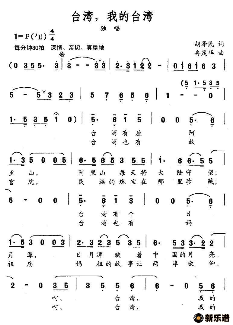 演唱的台湾,我的台湾歌词,台湾,我的台湾简谱.