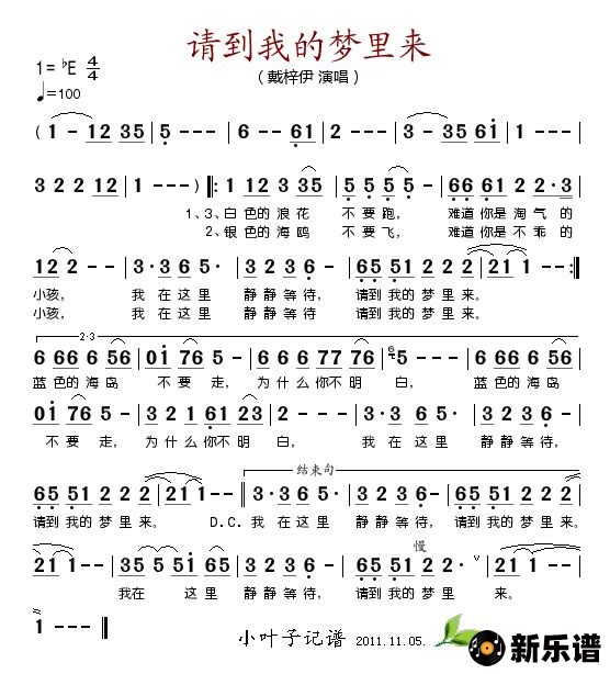 《请到我的梦里来》简谱 戴梓伊-小叶子制谱