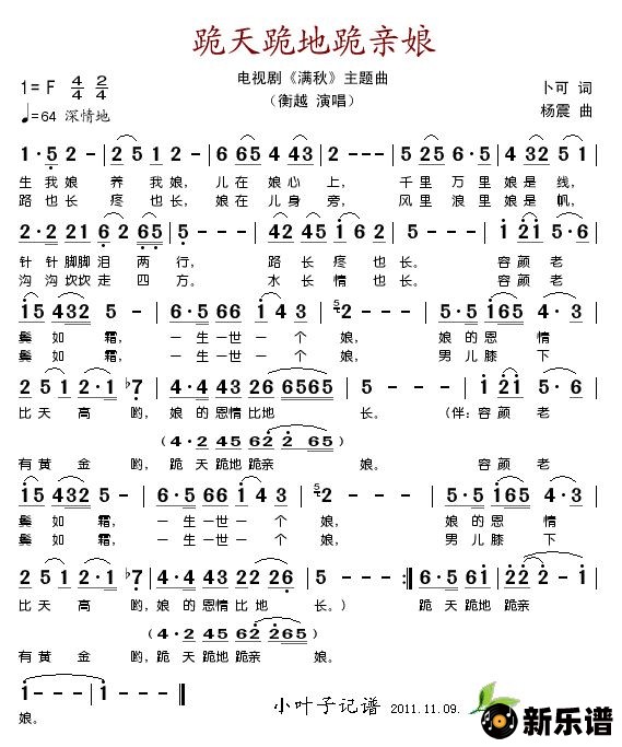 《跪天跪地跪亲娘(电视剧《满秋》主题曲)》简谱 衡越-小叶子制谱