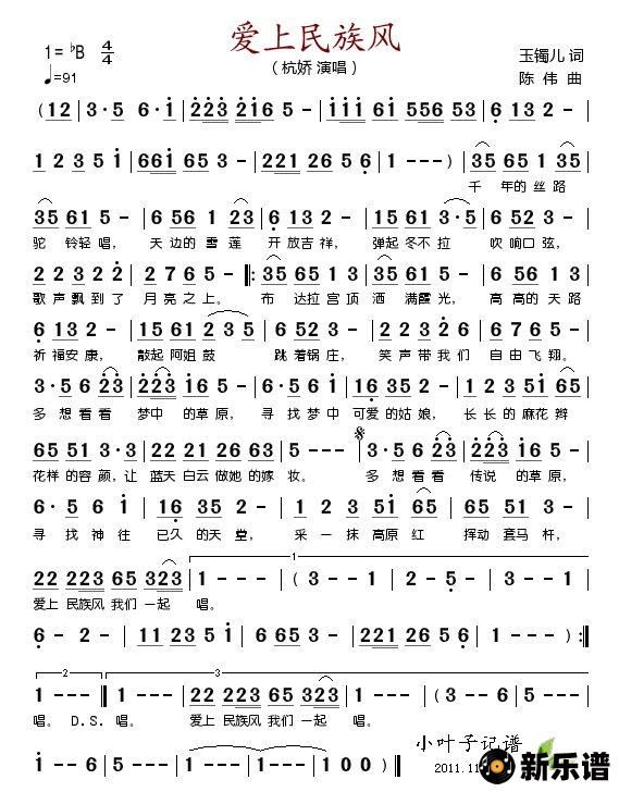 《爱上民族风》简谱 杭娇-小叶子制谱
