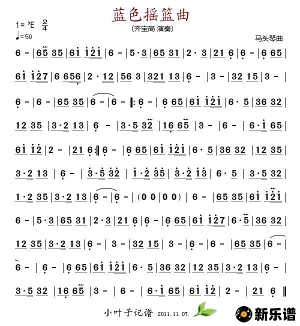 《蓝色摇篮曲》简谱 乐器演奏-小叶子制谱