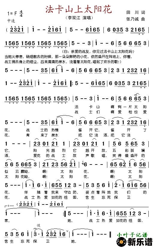 《法卡山上太阳花》简谱 李双江-小叶子制谱