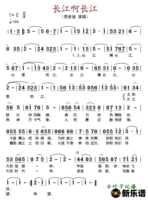 《长江啊长江》简谱 贾世骏-小叶子制谱