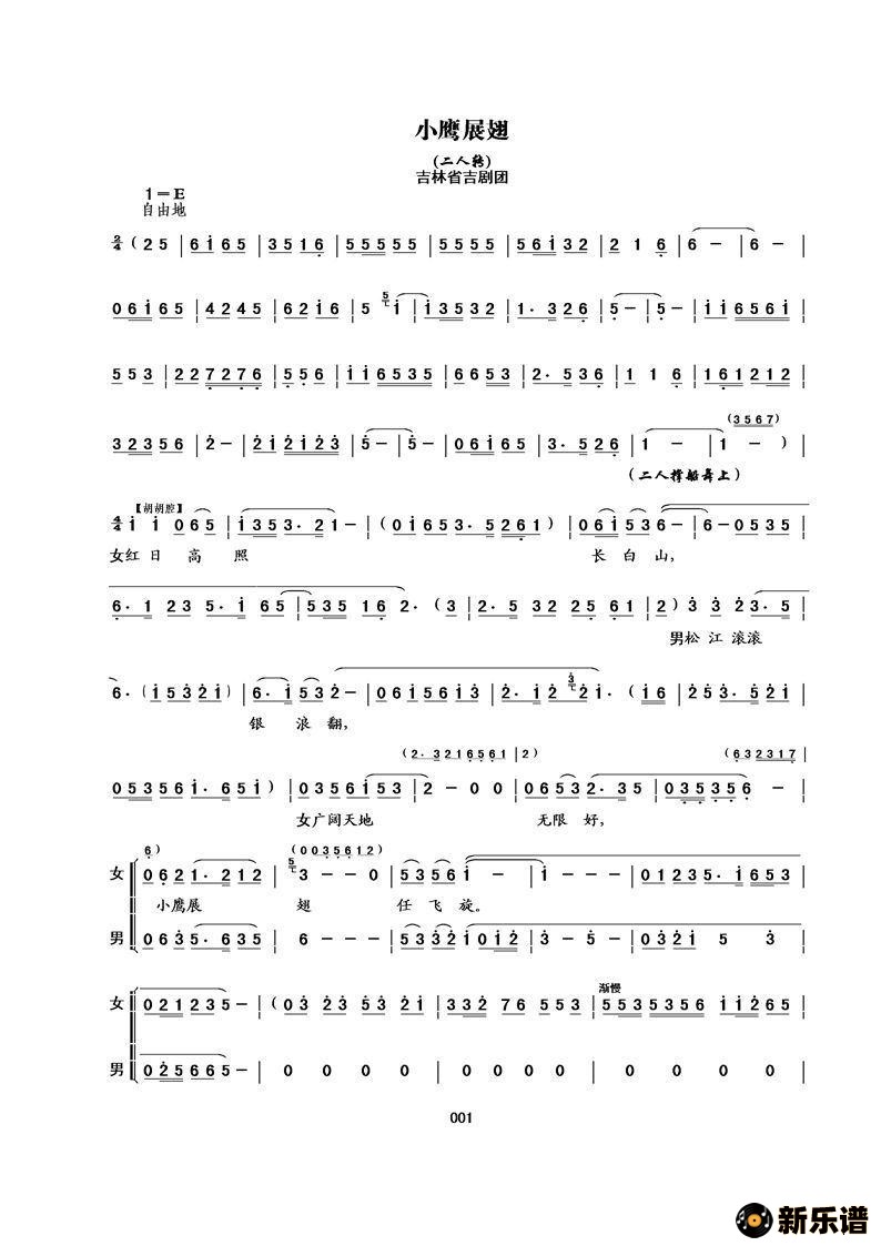 吉林省吉剧团演唱的[吉剧二人转]小鹰展翅歌词,[吉剧二人转]小鹰展翅简谱.