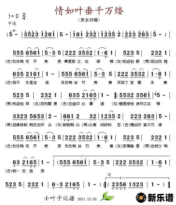 《情如叶垂千万缕》简谱 男女对唱-小叶子制谱