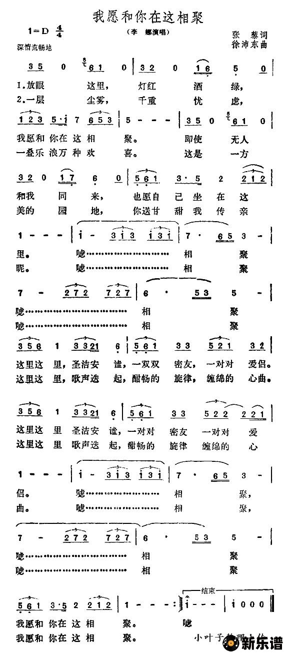 《我愿和你在这相聚》简谱 李娜-小叶子制谱