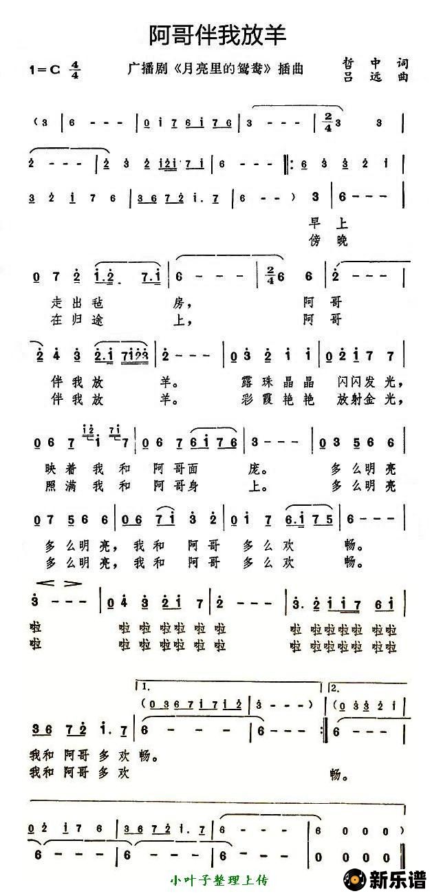 《阿哥伴我放羊》简谱 李谷一-小叶子制谱