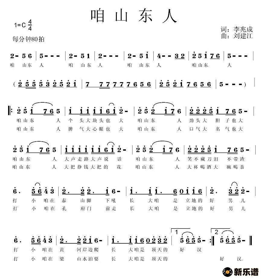 演唱的咱山东人歌词,咱山东人简谱.