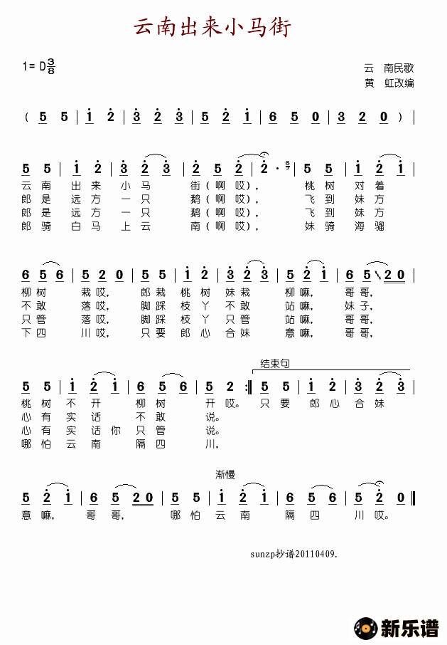 演唱的云南出来小马街歌词,云南出来小马街简谱.