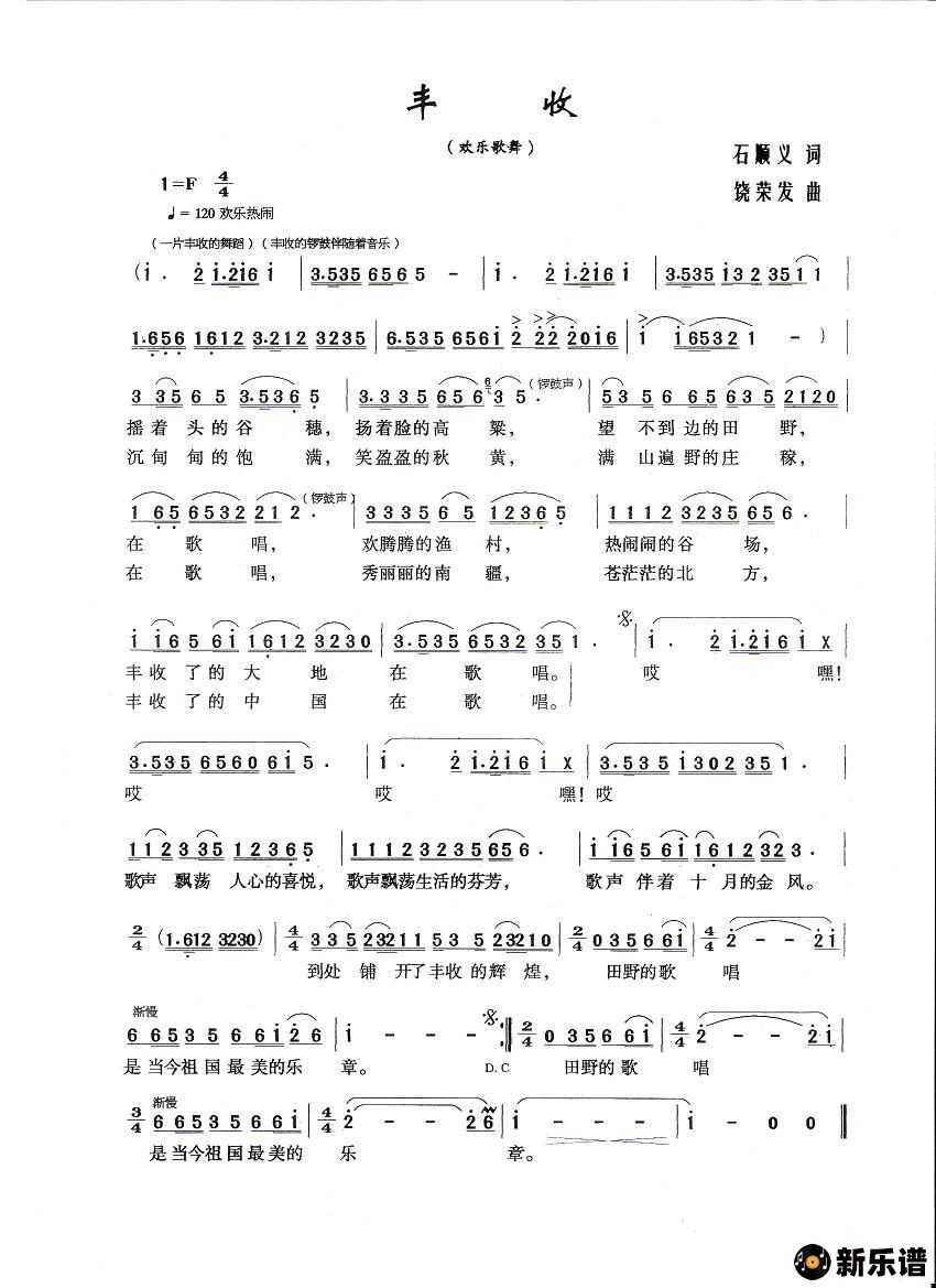 演唱的丰收(手稿版)歌词,丰收(手稿版)简谱.