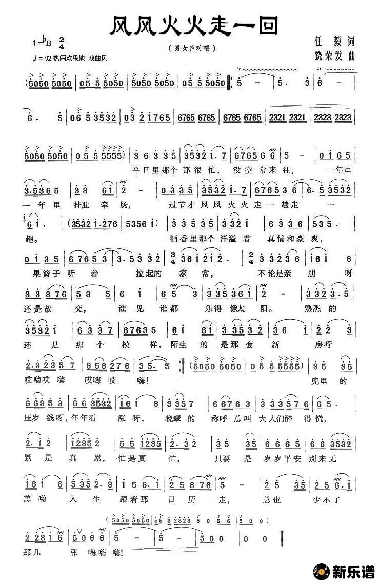 《风风火火走一回》简谱 于文华/吕继宏/李丹阳/耿为华-小叶子制谱