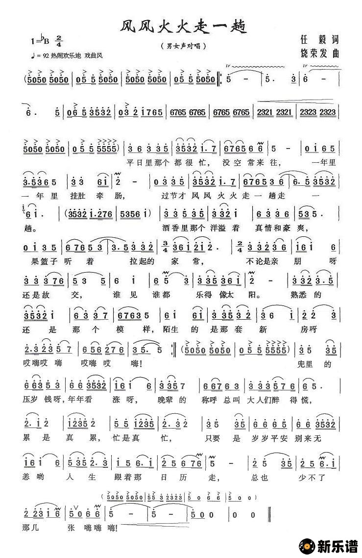 演唱的风风火火走一趟(手稿版)歌词,风风火火走一趟(手稿版)简谱.