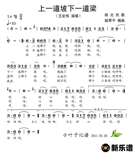 《上一道坡下一道梁》简谱 王宏伟-小叶子制谱
