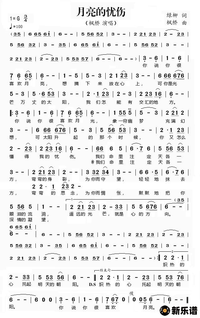 《月亮的忧伤》简谱 枫桥-小叶子制谱