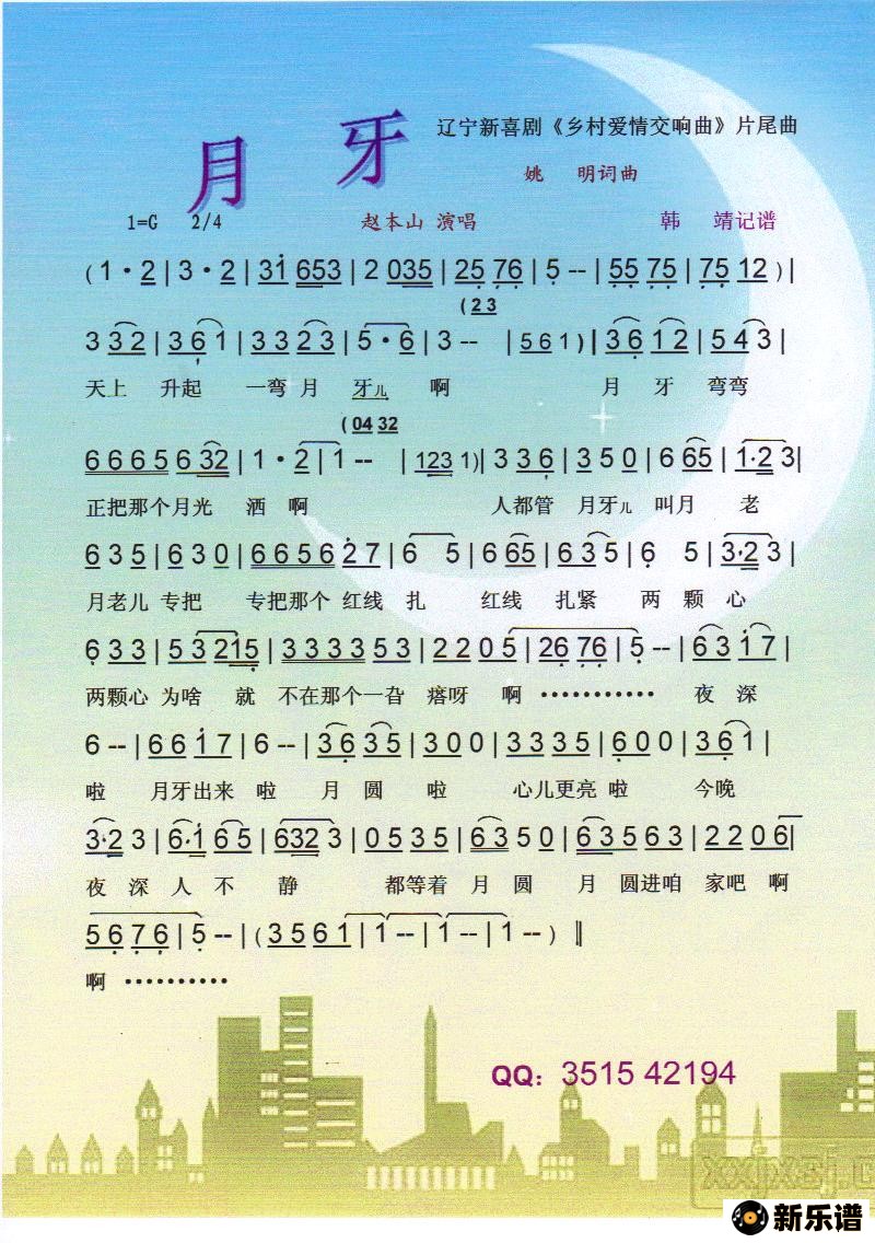 月牙 辽宁新喜剧《乡村爱情交响曲》片尾曲【彩谱】/赵本山 乡村爱情交响曲 相关曲谱