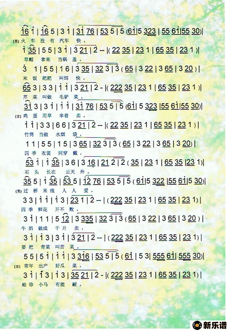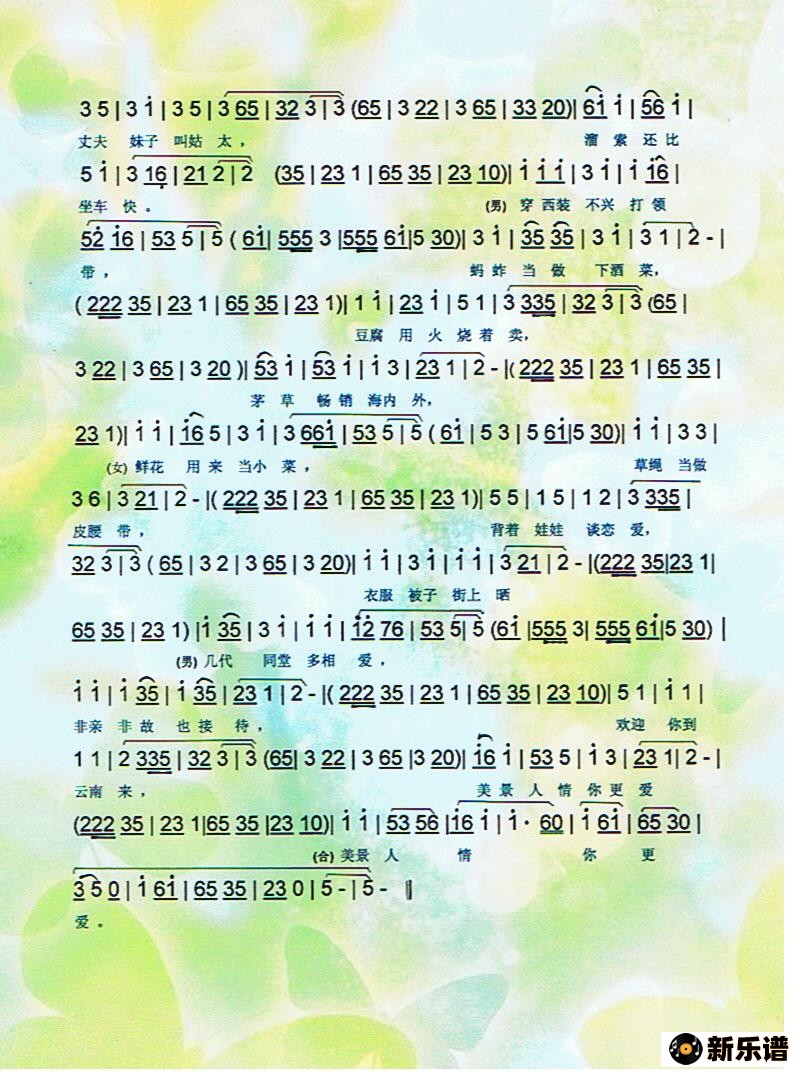 > 云南十八怪(云南花灯调)【彩谱】简谱