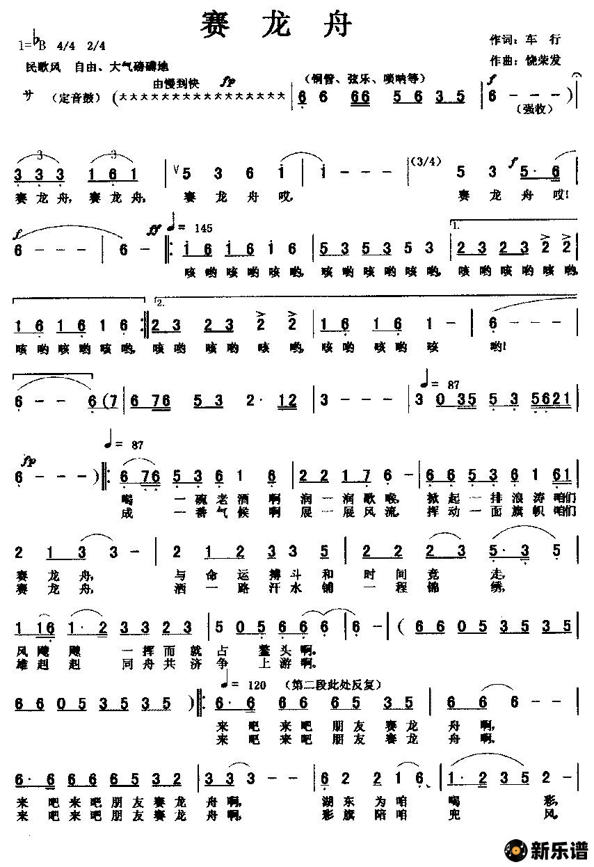 演唱的赛龙舟歌词,赛龙舟简谱.