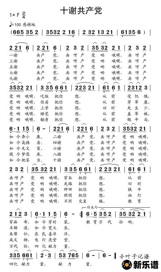 演唱的十谢共产党歌词,十谢共产党简谱.