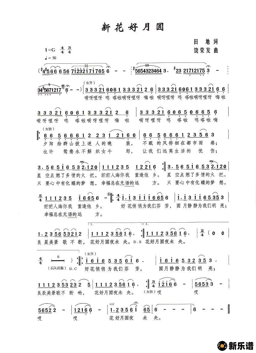 《新花好月圆》简谱 汤灿-小叶子制谱