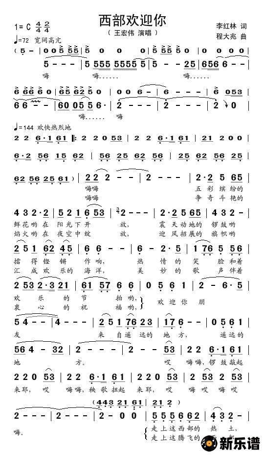 王宏伟演唱的西部欢迎你歌词,西部欢迎你简谱.