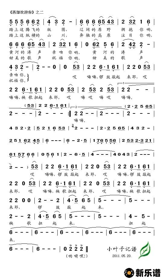 《西部欢迎你》简谱 王宏伟-小叶子制谱