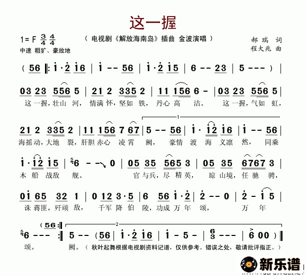 这一握(电视剧《解放海南岛》插曲)/金波 解放海南岛 相关曲谱