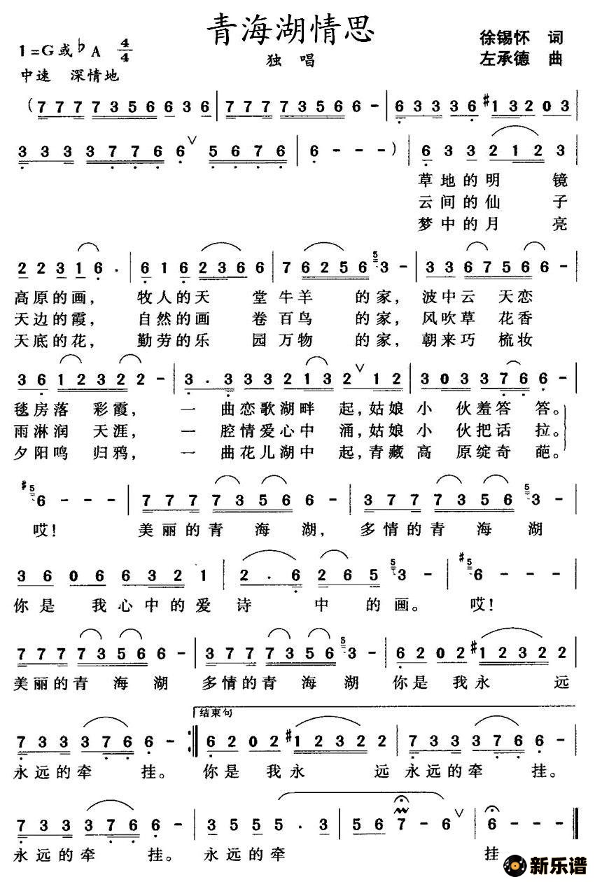 演唱的青海湖情思歌词,青海湖情思简谱.