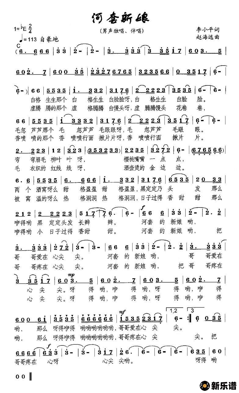《河套新娘(手稿版)》简谱 张慧/韩秉义-小叶子制谱