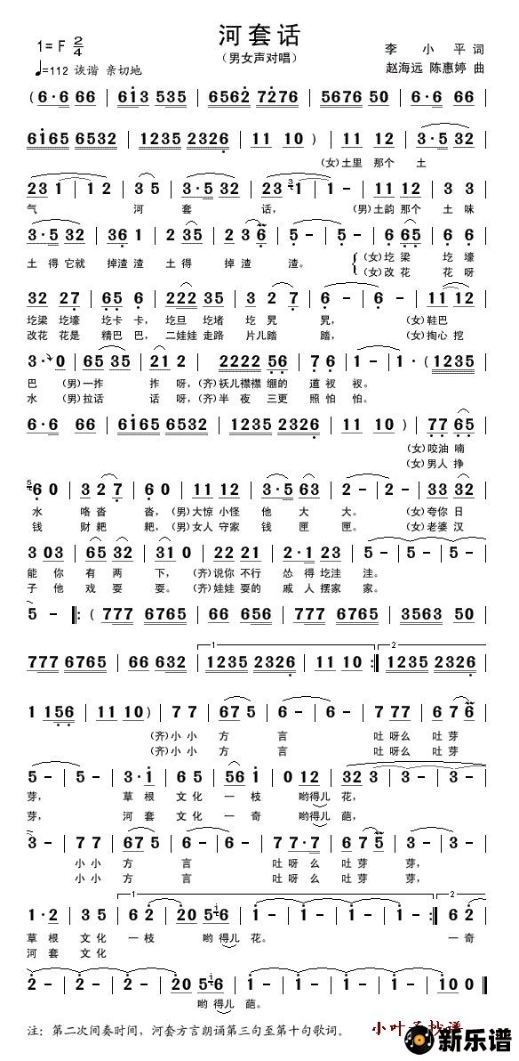 男女声对唱演唱的河套话歌词,河套话简谱.