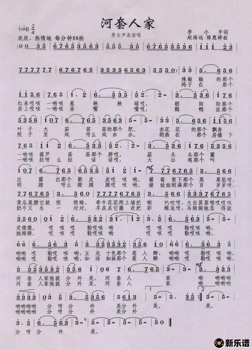 表演唱演唱的河套人家(手稿版)歌词,河套人家(手稿版)简谱.