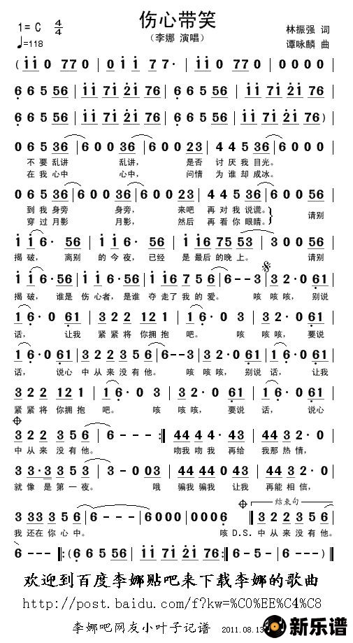 李娜演唱的伤心带笑歌词,伤心带笑简谱.