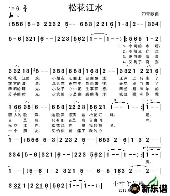 《松花江水》简谱 -小叶子制谱