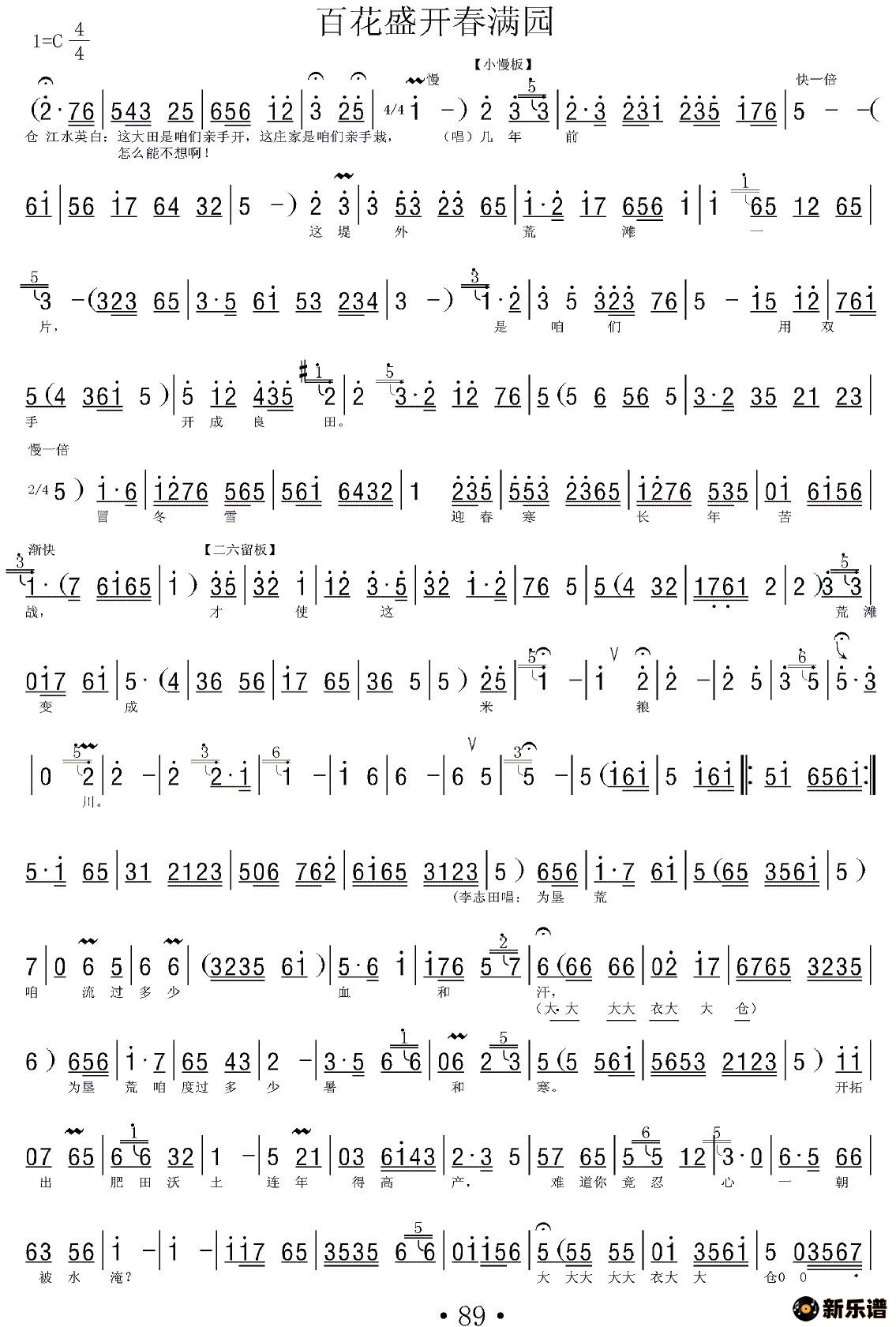 [河北梆子]百花盛开春满园(《龙江颂》江水英唱段、伴奏谱)/ 龙江颂 相关曲谱