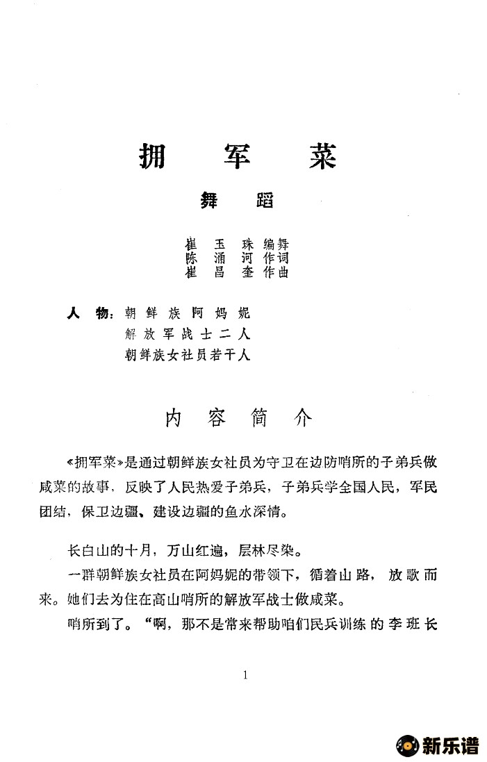 拥军菜(舞蹈音乐)/吉林省延边朝鲜族自治州文工团 相关曲谱