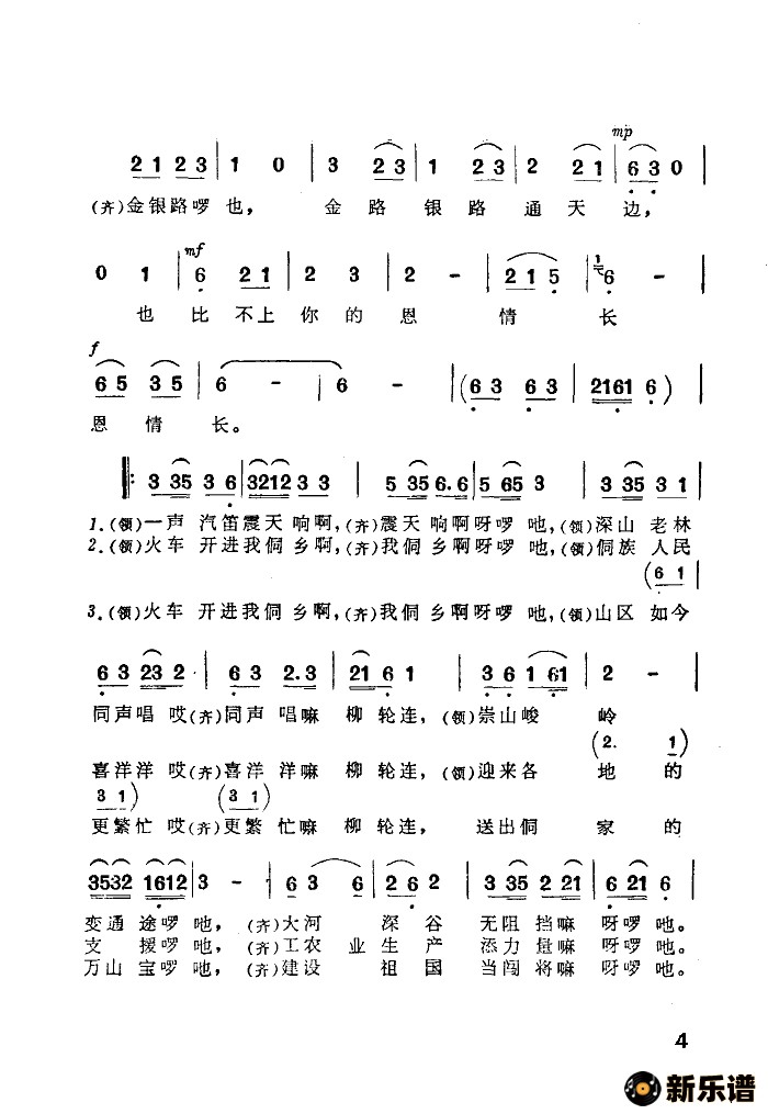 《喜迎火车进侗乡》简谱 广西歌舞团