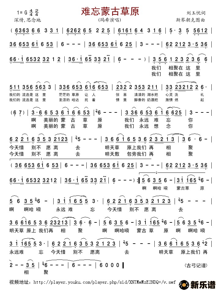 玛希演唱的难忘蒙古草原歌词,难忘蒙古草原简谱.