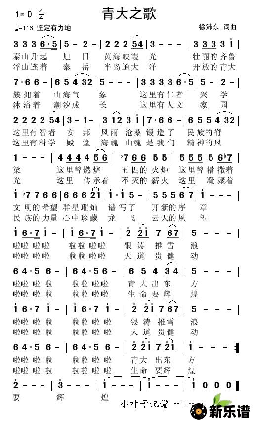 合唱演唱的青大之歌歌词,青大之歌简谱.