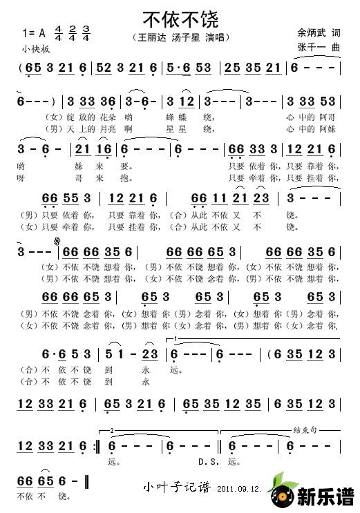 《不依不饶》简谱 王丽达/汤子星-小叶子制谱