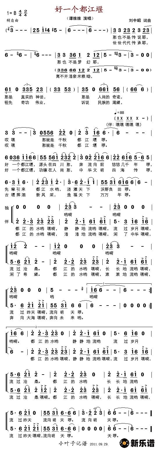 《好一个都江堰》简谱 谭维维-小叶子制谱